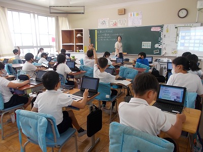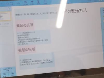 5年生の社会科では、水産業について学習をしています。今日は、養殖漁業のメリット、デメリットについて考える学習をしました。子どもたちは、教科書や資料集、インターネット資料等を活用して調べ、まとめることが出来ていました。