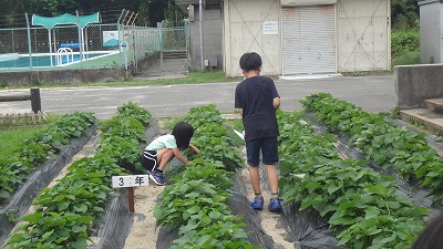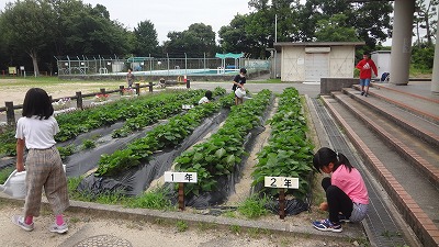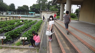 キッズ農園の朝の様子です。キッズボランティアに来てくれた子たちが、朝から畑の水やり・草取りを頑張ってくれています♪