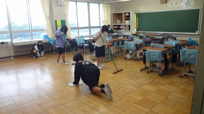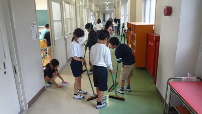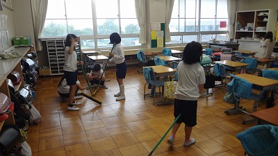 掃除時間中に各教室を回ると、友達と協力して一生懸命に掃除に取り組む姿が見られます。役割分担をしっかりこなす姿がステキです。さらに、周囲が見られるようになってくると、気づいた仕事まで率先して行えるようになってきます。社会に出たとき、そんなプラスαの仕事まで出来るようになっていれば、周囲から求められる存在になると思われます。日々の掃除を通じて、社会に繋がる力をつけたいと考えています。