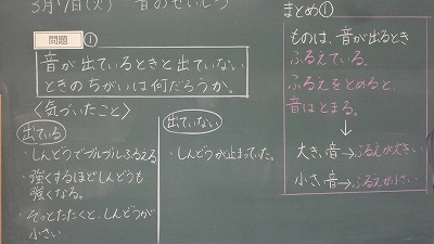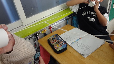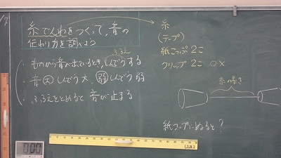 3年生の理科では、音はどのように伝わるのかについて、予想したり実験したりして学習を進めています。自分が疑問に感じたことをもとに実験で試すのは面白いですね!