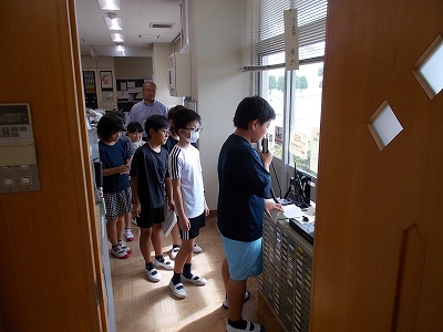 始業式は、熱中症対策のため、オンラインで行っていました。ところが、途中から不具合でインターネットが繋がらなくなったため、職員室からの校内放送で行いました。