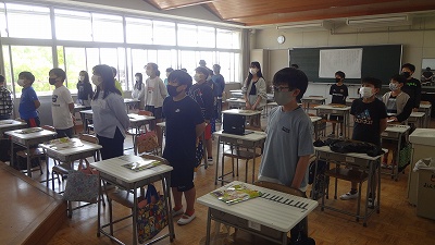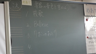 音楽室から5年生の美しい歌声が聞こえてきました。音楽室を覗くと、「ビリーブ」の練習をしている際中でした。「どのように歌うとよいか」を考えながら、友達とその考えを共有しながら練習に取り組んでいました。とてもステキな姿です。