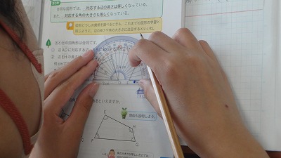 5年生の算数科の授業では、合同な図形についての学習を進めています。少人数授業により、一人一人が学習の理解を深められるように取り組んでいます。