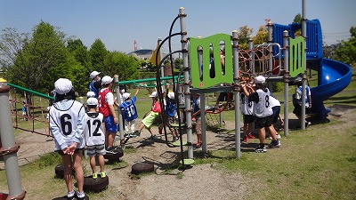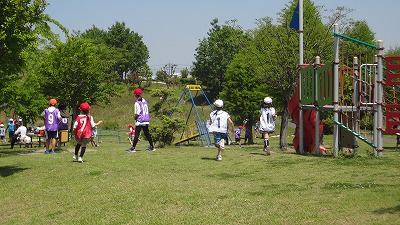 良いお天気に恵まれて楠中央緑地公園まで縦割り班ごとに歩いていきました。公園についたら、縦割り班ごとに6年生が考えた遊びをやり、楽しむ姿が見られました。異学年の繋がりを深める機会になったと思います。帰りは、やや疲れ気味の子もいましたが、無事に帰ってくることができました。(会員専用ページにも写真をUPしました。よろしければ、ご覧ください)
