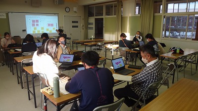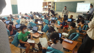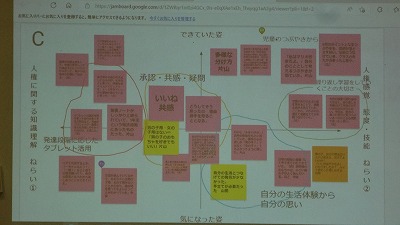 放課後の事後研修会では、「1年生から学習規律がしっかり身についている」「話している子の方向をしっかり見て話を聞いている」「子どもたちがよく鍛えられている」等の話が出る一方、子どもたちがあまりにも素直に教師の意図する方向へ考え方が進んだため、子どもたちの考えをもう少し揺さぶる場面も必要ではなかった等について協議しました。