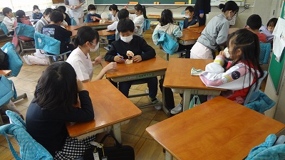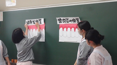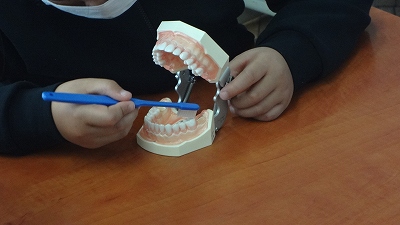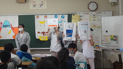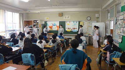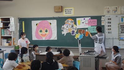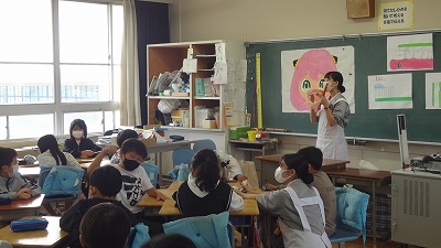 「むし歯にならないためにはどうすればよいか」について、クイズやパネルをたくさん準備してくださり、子どもたちに分かりやすく教えていただきました。