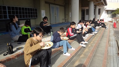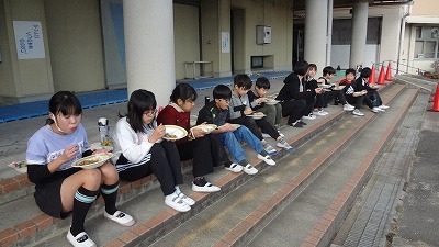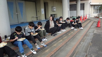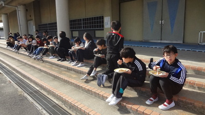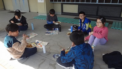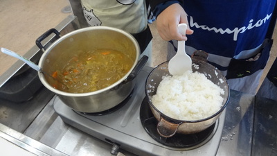 今日は、自分たちで企画した第2回自然教室がありました。前回の自然教室では、残念ながら体調不良でお休みだった子が数人いましたが、今回は全員が出席・参加することが出来ました。班の友達と協力して、ご飯を炊きカレーを作りました。作ったカレーは、体育館通路まで行ってキャンプ気分で外で食べました!どの子も満足した表情で良い笑顔でした!