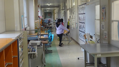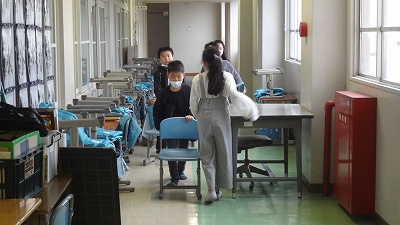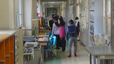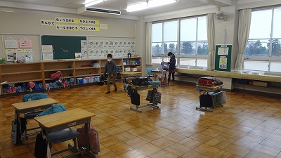 学期末・年度末が近づき、各クラスで教室の机・椅子等を廊下へ出してワックスがけをしています。翌朝、自分たちで協力して机・椅子を入れて「教室をつくる姿」に「すごいなぁ!」と感心します。