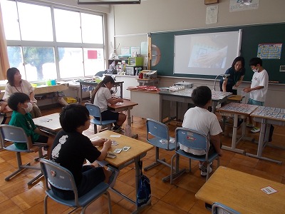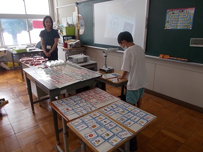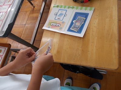 はまっこでは、今日、お買い物ゲームをしました。実際の生活の場面に即して、買いたいものを購入し、いくら出すとおつりはいくらかを考えるゲームです。すばやく計算しつつも、楽しく学習する姿が見られました。