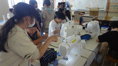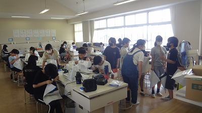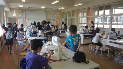 先週に引き続き、ナップザック作りを進めています。ミシンの使い方にも随分と慣れてきて、「完成」する子も出てきました。苦労して作った分、思い入れが強くなりますね。
