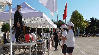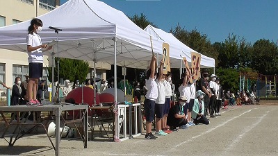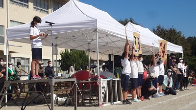 地域・保護者の皆さま、朝早くからご来校・子どもたちへのご声援をいただきまして、ありがとうございました。また、PTA役員の皆さま、昨日の準備・早朝からの駐車場整備、片づけ等をありがとうございました。片づけは、たくさんの保護者の皆さまにもご協力をいただいたので、早く片づけることができました。ありがとうございました。