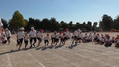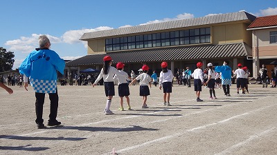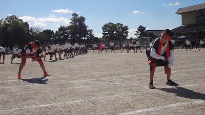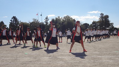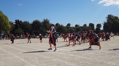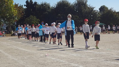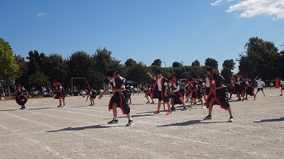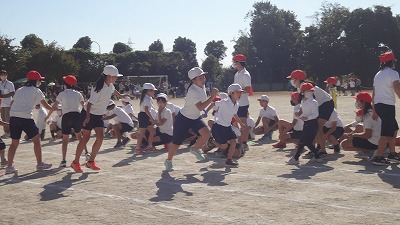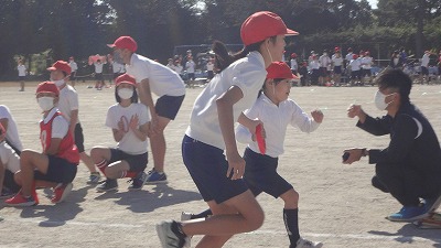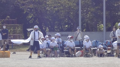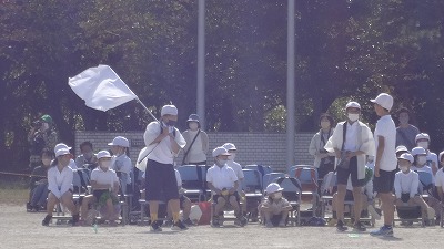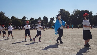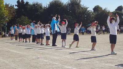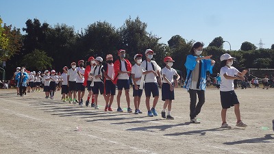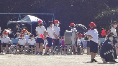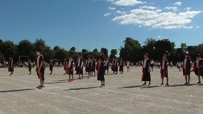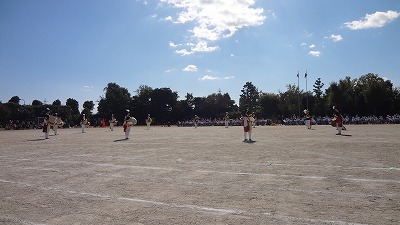 絶好の秋晴れに恵まれて、無事に運動会を開催することが出来ました。今日は、よく晴れて日差しがあったものの、爽やかな風がふいて爽秋の運動会となりました。時折、やや風が強く砂ぼこりが舞うこともありましたが、それを子どもたちはものともせず、一生懸命に競技や演技に取り組む姿が見られました。