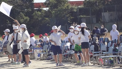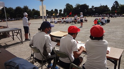 閉会式の様子 ~整理体操、得点発表、優勝旗授与、参加賞授与等、それぞれの役割を立派に果たすことができました!~