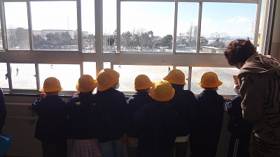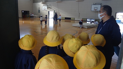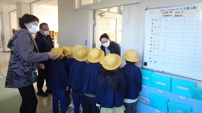 今日は、海山道保育園の皆さんが来校し、校舎内を見学して回りました。小学校の子どもたちからは、「4月から待っているよー!」と温かなメッセージをもらっていました。「どうぞよろしく!」
