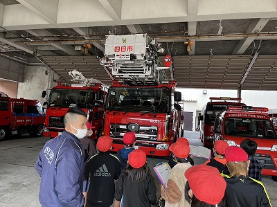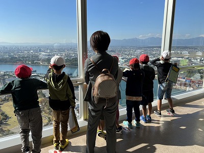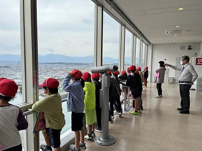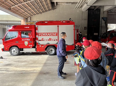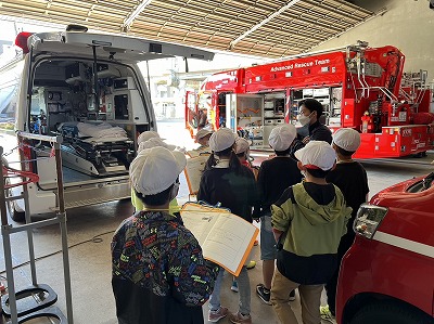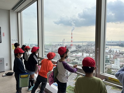 3年生の子どもたちにとって初めての社会見学がありました。バスの都合で昨日は3年2組、今日は3年生1組が行きました。見学先の都合でクラスによって見学の順番は異なりましたが、目的地として「中消防署」「四日市港ポートビル」「茶業振興センター」の3か所を巡りました。
