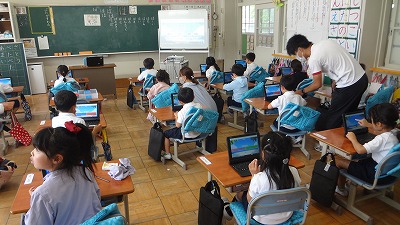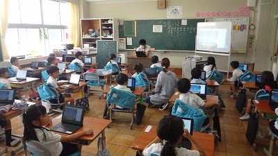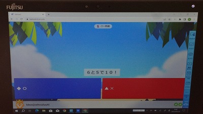 今日は、昨日の算数科で学習した「あわせていくつ」の復習をタブレットを活用しながら行いました。子どもたちは、画面に出て来るクイズを楽しく解く姿が見られました。