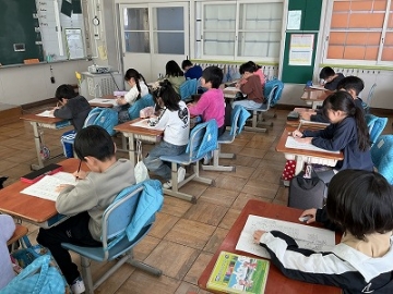 新年試筆、書初めをしました。みんな手本を見て丁寧に書いていました。