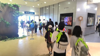 最後の見学地、映画村に到着しました。パーク内は班で自由行動なので、あらかじめ計画した場所をめざしてまとまって出かけていきました。
