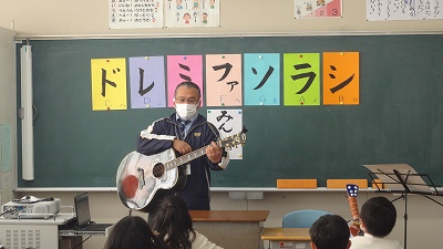 ギター伴奏は、なんと、スペシャルゲストティーチャーの校長先生でした!