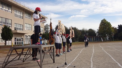 今日は、1限目から閉会式の全校練習を行いました。得点発表、優勝旗授与、記念品授与等、ひと通りの流れを確認しました。その後、赤組・白組に分かれて応援合戦の練習をしました。高学年の子どもたちが率先してきびきび行動するので、低学年の子どもたちにとってとても良いお手本となっています。