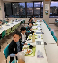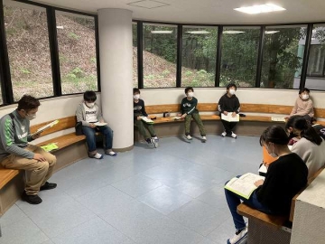 里山保全活動の後、子どもたちは各部屋に入り、班長会議が行われました。