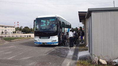 今日は、津市立上野小学校5年生の皆さんが、四日市公害の学習をするために、本校に来ていただきました。公害の歴史や環境保全の大切さについての学習の他、うがい場見学、展望台から塩浜地区を眺望してもらいました。廊下で出会った本校の子どもたちとあいさつを交わす微笑ましい場面も見られました。