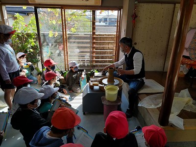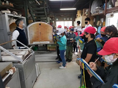 今日は、4年生の社会見学です。まず初めの見学地は3年生時の陶芸教室でお世話になった醉月陶苑さんです。焼き窯を見せて頂いたり、実際にろくろを回して陶器ができていく様子を見せて頂いたりして、プロの技に感動する子どもたちの声が漏れていました。