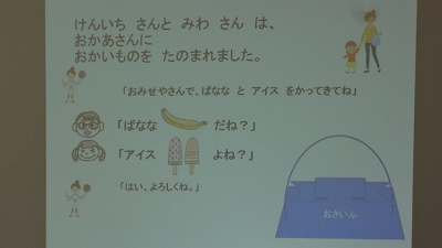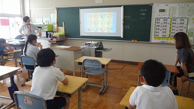 社会生活をしていく上で、お店で買い物をする際に合計金額を計算して、お金を支払っておつりを受け取るというスキルはとても大切なものです。今日はその学習にチャレンジしました。子どもたちはクイズが出されるたびに、「あっ、これは〇円になる!」と答えが提示される前に答えていました。学習にのめり込んで取り組む姿が見られました。