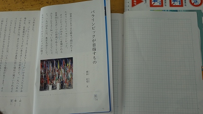 今日から新しい単元「パラリンピックが目指すもの」に入りました。説明的文章のため、前単元の説明文の読み取り方の復習から入り、どのように読み取っていけばよいかを確認しました。既習事項を生かして、自分で読み進められるようになるといいですね。