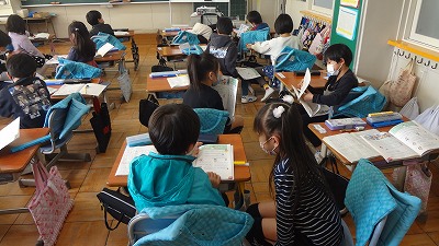 途中で、隣の友達と考え方を交流し、互いの考えを伝え合う姿も見られました。
