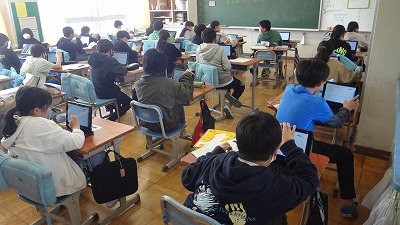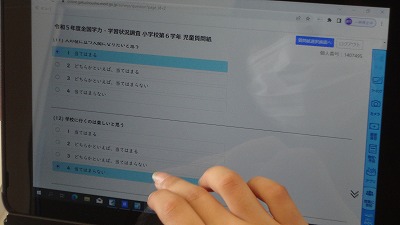 1週間後にある全国学力・学習状況調査を前に、オンラインで児童質問紙に取り組みました。子どもたちは、タブレットの扱い方に慣れているため、比較的スムーズに終えることができました。