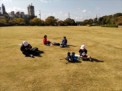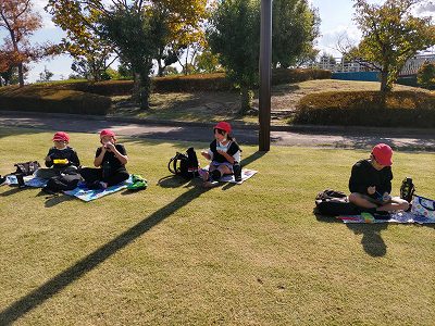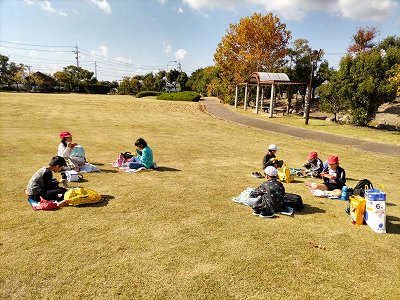 霞港公園について、お弁当を食べました。朝早くからお弁当をご準備いただき、ありがとうございました。広々貸し切り状態です。ソーシャルディスタンスを保ちながら静かにいただきました。