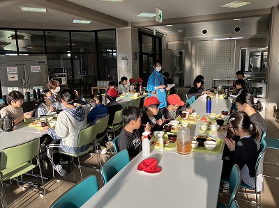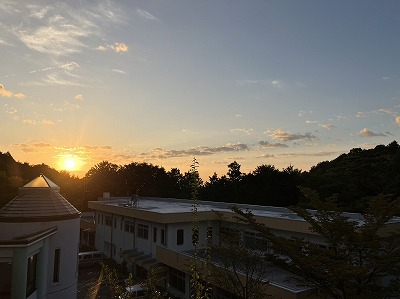 おはようございます。今日も良いお天気に恵まれて、気持ちの良い朝です。爽やかな空気の中で、朝の集いがスタートし、朝日の差し込む食堂で朝食をいただいています!