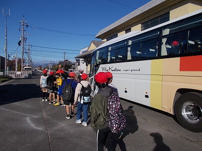 絶好のお天気に恵まれて、先程、5年生が社会見学に出発しました。今日の目的地は、「めんたいパークとこなめ」「東邦ガス ガスエネルギー館」です。社会科で学んだ工業やエネルギーと私たちとの生活の関わりについての学習を深めてきます。きっと、学びの多い社会見学になることだと思います。