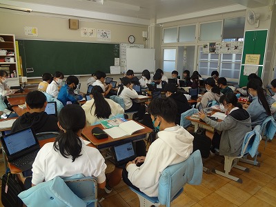 6年生の社会科では、現在、「戦国時代」について学習を進めています。今日は、「信長が何故、キリスト教の布教に力を入れたのか」について深めるため、調べ学習に力を入れました。黙々と集中して取り組む子どもたちです!