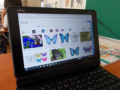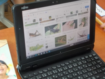 今日は生活科の時間に、タブレットに文字を入力して画像検索の方法を学びました。見つけたり調べたりしたい昆虫の名前を入力し、「画像」という文字をクリックまたはタップして、検索する方法を学びました。子どもたちは、口々に次のように呟き、楽しそうでした。
