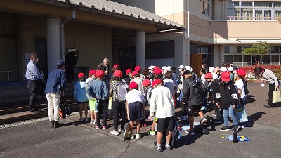 先程、学校に到着し、地域の方に「塩浜の歴史についてよくわかりました」「塩浜地区のいろいろな場所を見ることができてよかったです」等の感想やお礼を伝えることができました。