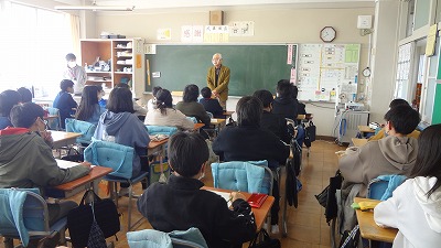 今日は、塩浜小学校の卒業生で、元小学校の校長先生だった住職さんが、6年生に出前授業をしてくださいました。そして、「誰にでも必ず一つは良いところがある。その良いところ、好きなこと、得意なところをしっかり伸ばしていこう。そうすれば、そこから道が開ける!」というメッセージを頂きました。 卒業を3月に控えた子どもたちにとって、貴重なお話をして頂きました。ありがとうございました。