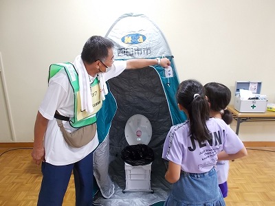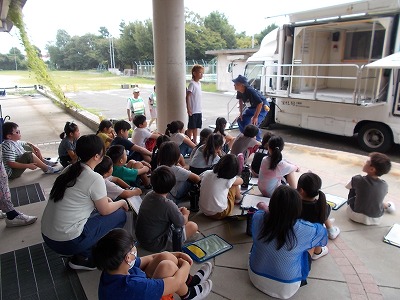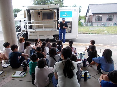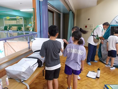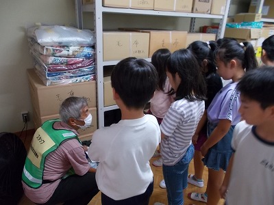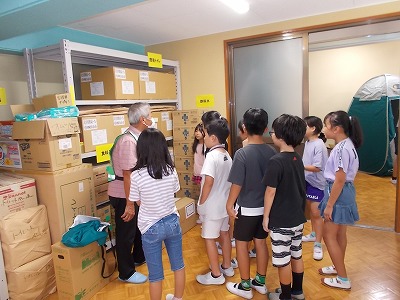 今日は、塩浜地区防災協議会の皆さんが来校され、3・4年生に防災授業を開いていただきました。①起震車体験、②防災倉庫及び防災グッズの見学や体験、③防災DVD視聴及び「自分や家族・周囲の方の命を守るために大切なこと」の3つのブースを3クラスがローテーションで回りながら学ぶ機会を作っていただきました。