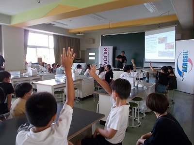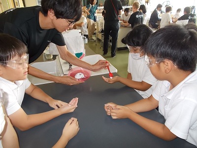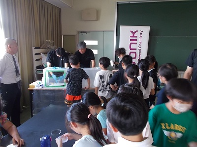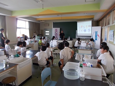 4・5年生に出前授業をしてくださいました。私達の日常生活に欠かせない「シリカ」という存在を初めて知った子どもたち。不思議な粉の正体を学び、科学実験を体験させていただきました。「この塩浜地区にこんなすごいものを作っている企業さんがあるんだ!」ということを実感した子どもたちでした。このシリカの様々な活用方法については、ぜひお子さんにお尋ねください。
