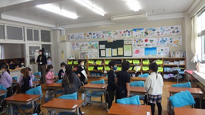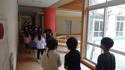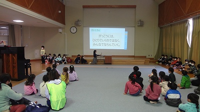 今日は、2・3限目に交流会がありました。1年生では、この日のためにたくさん練習して準備を進めてきました。初めのあいさつ、校歌斉唱、学校クイズ、学校探検(学校の案内)等を張り切り、自分たちで司会進行する積極的な姿が見られました。園の先生方からは、「校歌がとても感動しました。とても22人とは思えない、素晴らしい歌声でした」とお褒めの言葉を頂きました。お兄さん・お姉さんぶりを発揮した1年生でした。