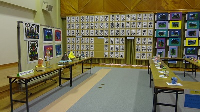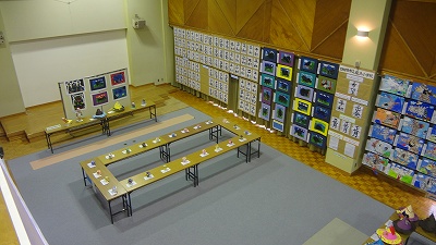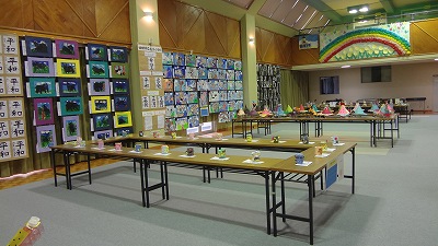 今日から本校2階の多目的ホールで、校内作品展が始まりました。どれも、子どもたちが一生懸命に作った力作ばかりです。2月3日(金)まで開催しています。お越しの際は、校舎西側(道路に面した)開放用玄関からお入りください。