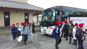 今日は、5年生が社会見学で、ガスエネルギー館と三菱自動車工業岡崎工業に行きます。無事全員揃って出発しました。