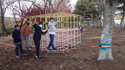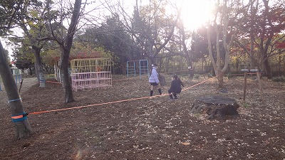 整備された「みーつけたの森」に設置したスラックラインに、毎休み時間、遊びに来る子がいます。遊びながら体幹を鍛えられることで知らせているスラックライン!今日も楽しむ姿が見られました。