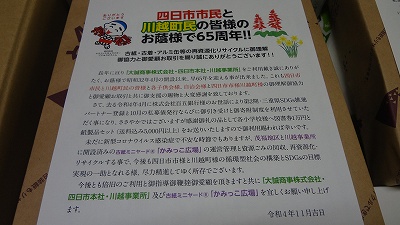 大誠商事株式会社様は、三重県SDGs推進パートナーとして、四日市市と川越町において古紙・古着・アルミ缶等の再資源化リサイクルに尽力されている企業様です。今回、「子どもたちのために」と、各小学校にご寄付くださいました。