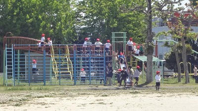 今日は、お天気がよくて、たくさんの子どもたちが外で元気に遊ぶ姿が見られました。体をたくさん動かして体力が向上すると良いですね。