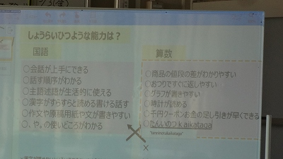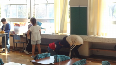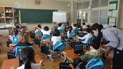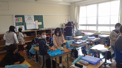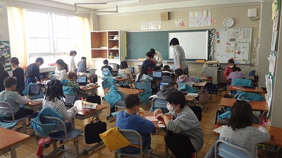 各教室を回ると、国語や算数等の学年末の復習、「将来必要な能力は?」というテーマでのディベート、リコーダー練習、教室回りの片付け、電磁石の理科実験等、各学年それぞれの課題に取り組む姿が見られました。
