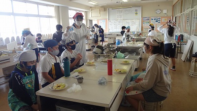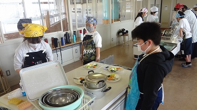 コロナ禍が緩和されて、今日は今年度初めての調理実習がありました。同じ班の友達と協力して調理をしたり、片付けをしたりすることが出来ました。美味しそうですね!