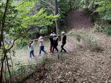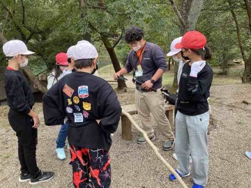 その後、外へ出て実際に木を切り、枝をはらうなどの活動を行いました。