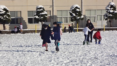 今日は、昨日と打って変わって良いお天気になりました。子どもたちは、寒さに負けず、雪遊びを大いに楽しみました!